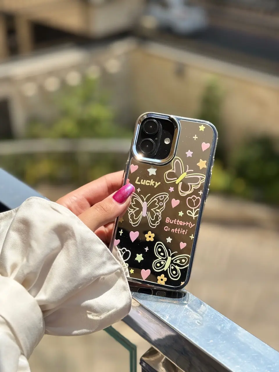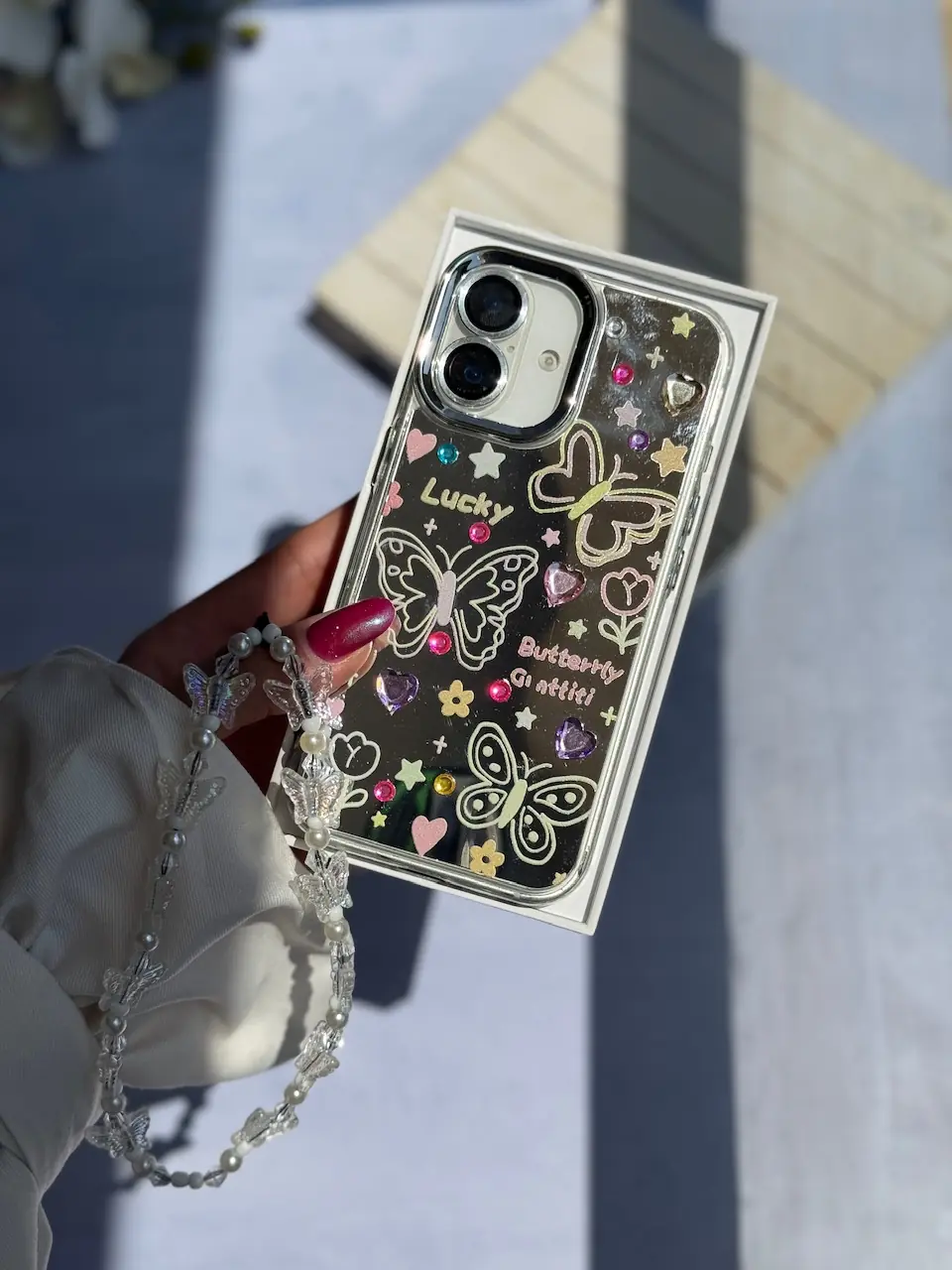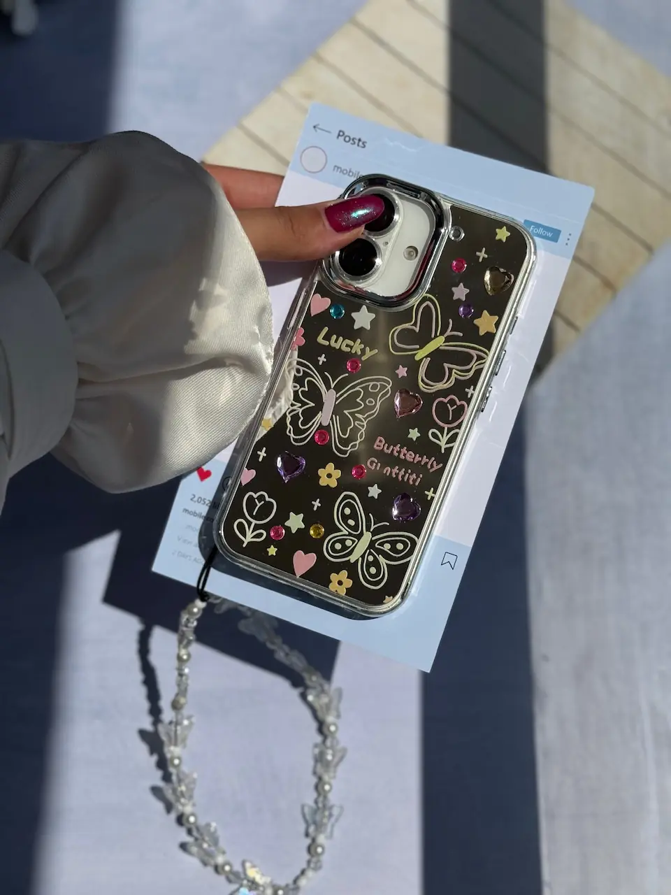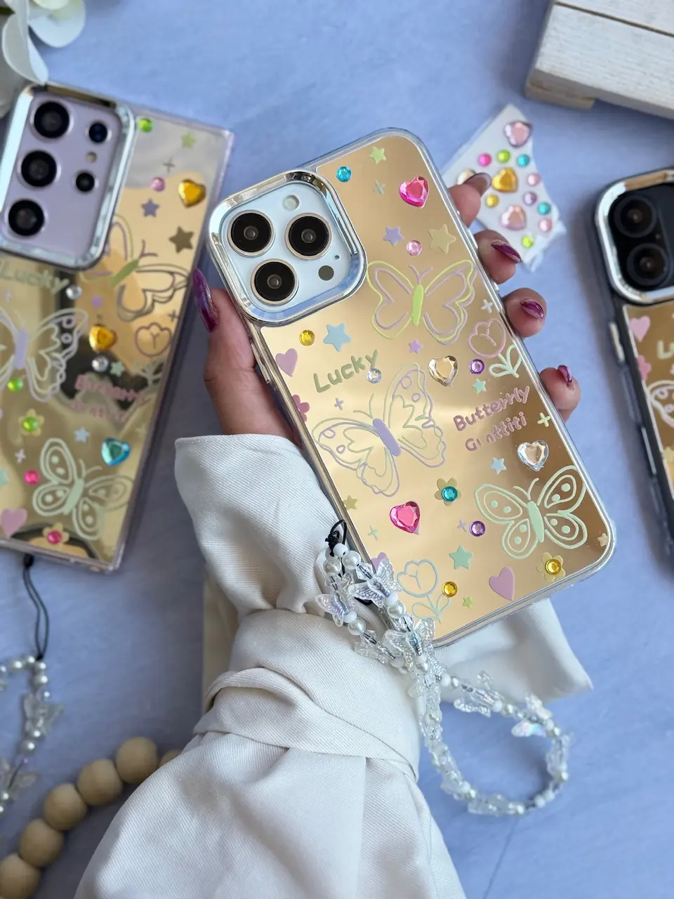 قاب نقاشی پروانه آینه ای با آویز آیفون (کدC2056)